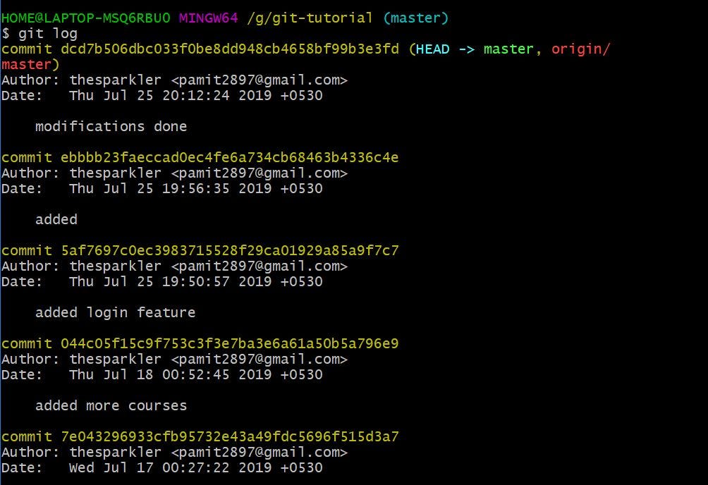 Then, the command returns the following: Git commit the commit command is used to save your changes to the local repository. When a git repository is published in github, a default commit message is added with each file and folder of which function of the particular file or folder is not defined clearly. Effectively, you are creating a new commit that replaces the old one. Let's commit the staged changes to the repository. Before changing the commit message, you can also add other changes you previously forgot: You could also add another couple of changes you forgot. How to resolve this problem Commits to git are accompanied with a commit message that explains what changes the commit has made to the code. Below is the message which comes: We can use git log command in order to list, filter, view commit history in different ways. After taking pull when we try to go to the branch b1 again then this message comes on git bash screen. That is, the most recent commits show up first.